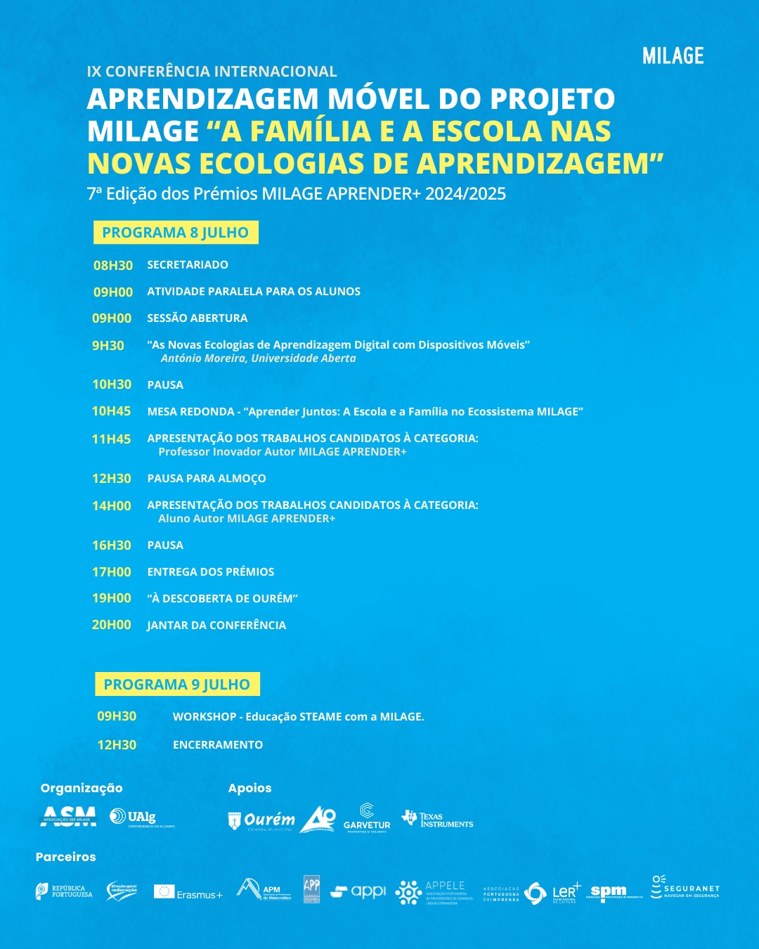 Neste âmbito, terá também lugar a 7.ª Edição dos Prémios MILAGE Aprender + 2024/2025.