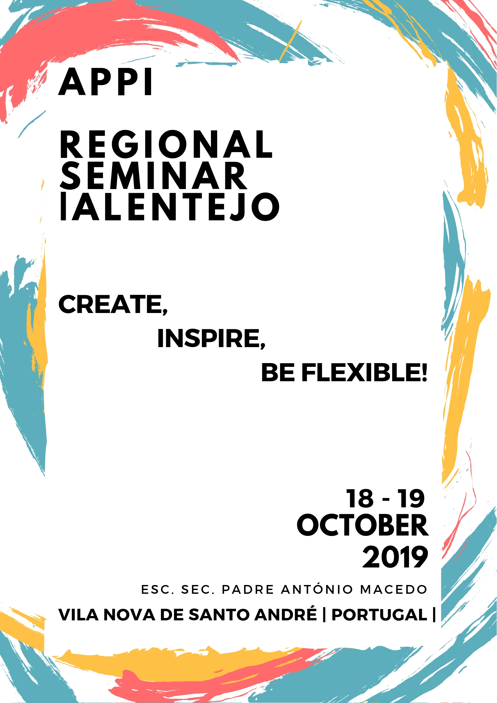 The Associação Portuguesa de Professores de Inglês – APPI – Executive Committee is happy to announce that the APPI Regional Seminar Alentejo will be held at Escola Secundária Padre António Macedo, in Vila Nova de Santo André on October 18th and 19th, 2019. APPI is most happy to come back to Vila Nova de S. André and grateful to the school Executive Board to host it as back in 2016.